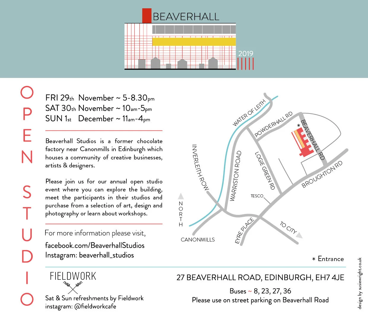 Sarah is delighted to welcome friends and clients to attend her annual open studio this coming Friday 29 November 5pm-8.30pm and over the weekend. All the Beaverhall Studios will give you a warm welcome and it's a great opportunity to see Sarah's newest work and to meet other designers and makers and buy an original Christmas present.